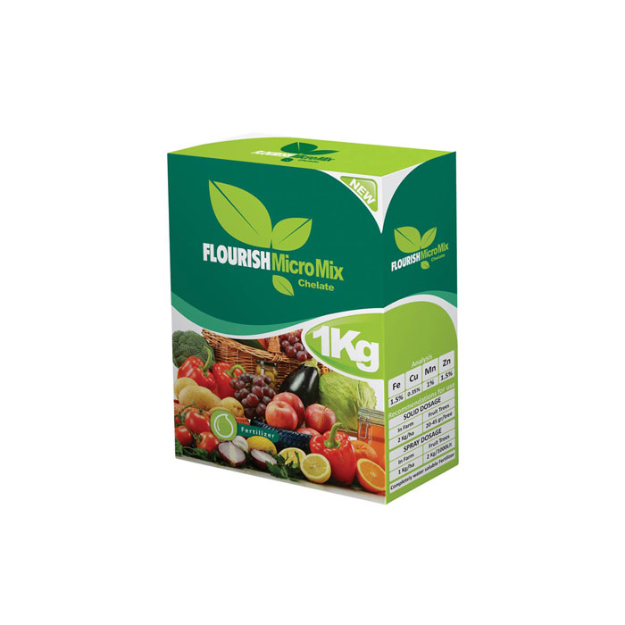 کودهای مایع و جامد Flourish Micro Mix حاوی میزان قابل توجهی از عناصر آهن، روی، منگنز، مس و بُر با قابلیت حلالیت فوق‌العاده می‌باشند و از ظهور کمبود عناصر ریزمغذی جلوگیری نموده و یا سریعاً کمبود عناصر مورد نیاز را برطرف می‌نمایند.