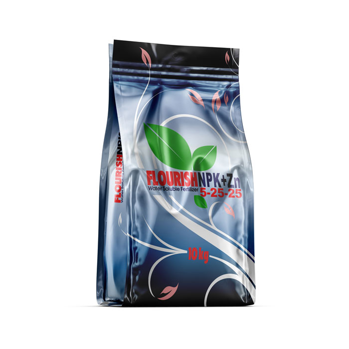 کود NPK 5-25-25+Zn فلوریش با دارا بودن درصد قابل توجهی از عناصر فسفر و پتاسیم به همراه عنصر روی تأثیر بسزایی در تأمین نیاز گیاه به این عناصر مهم دارد. این کود در خاک هایی که نیاز آنها به عناصر فسفر و پتاسیم بیش از ازت می باشد، بر سایر انواع کودهای NPK ارجحیت دارد.
